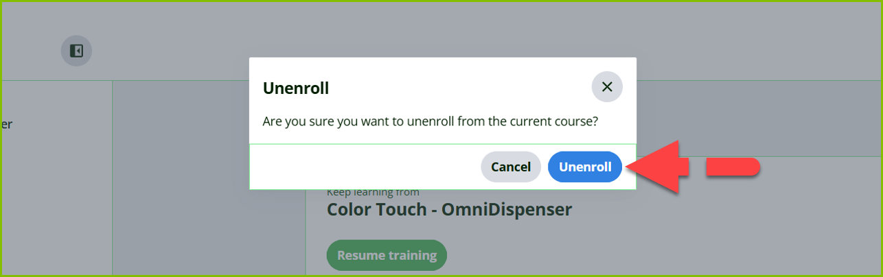 You’ll be prompted with the message: “Are you sure you want to unenroll from the current course?”, select ‘Unenroll’.