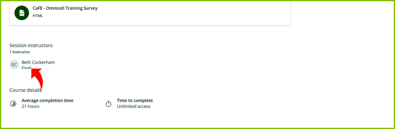Then, scroll down to ‘Session Instructors’ and select the ‘Email’ link [see image below].