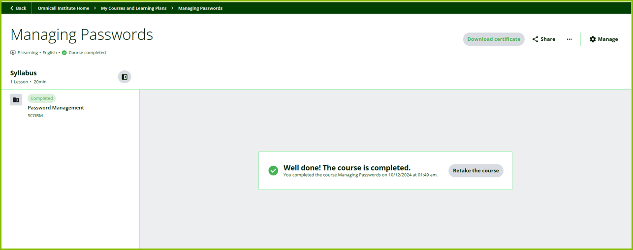 4. On the launch page, click the ‘Download Certificate’ button in the upper right corner; next to the ‘Share’ button.