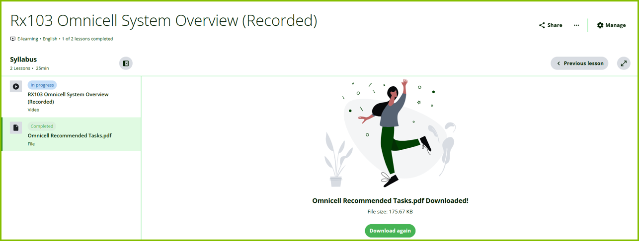 You can retrieve the ‘recommended tasks’ by selecting the ‘download’ button on the training launch page of the Rx103 and Rx106 courses; as shown below.